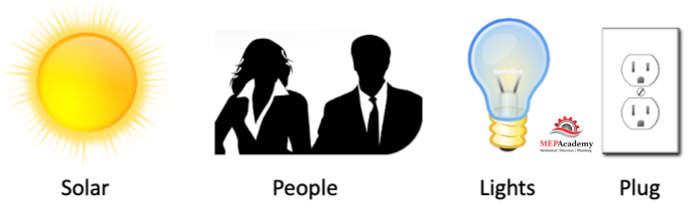 The load calculations will take into consideration the solar load on the structure, the quantity of people in each space, heat from lights, and the plug load, which is all the equipment and appliances that use power and generate heat within the building.
