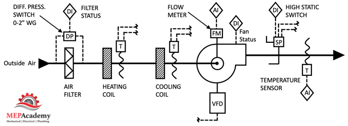 All these points can be monitored by the BAS, building automation system for a more optimized and energy efficient system.