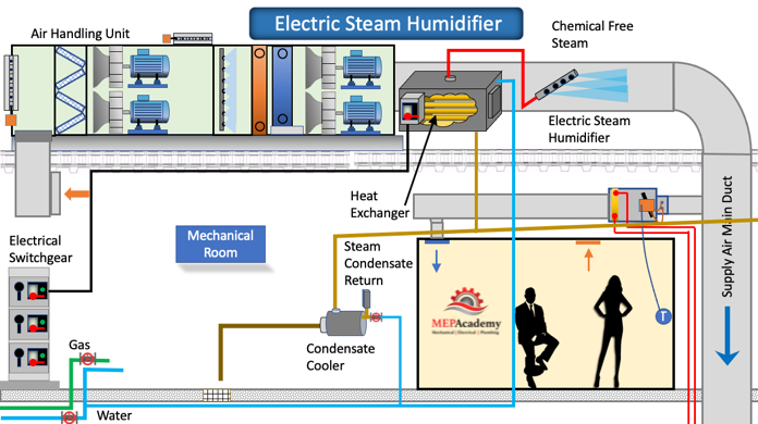 Humidifier Types and Humidity Basics. Humidifiers vary as to the source or energy that provides the final product produced for humidification whether that’s steam or mist. You can use Steam, Electricity, Gas, Air or Water as the main source of humidification. We’ll explain each of these humidification systems. Humidifiers can be installed within Air Handlers, ductwork or open areas.