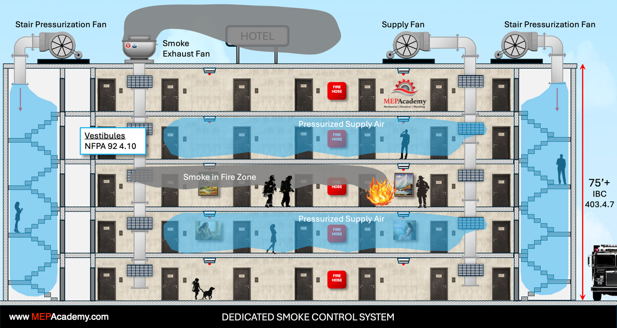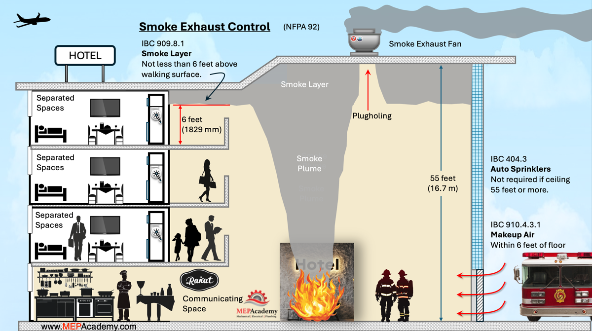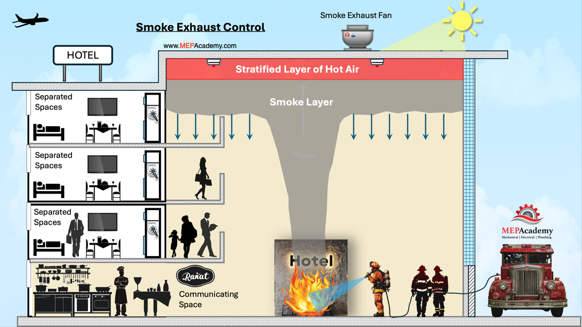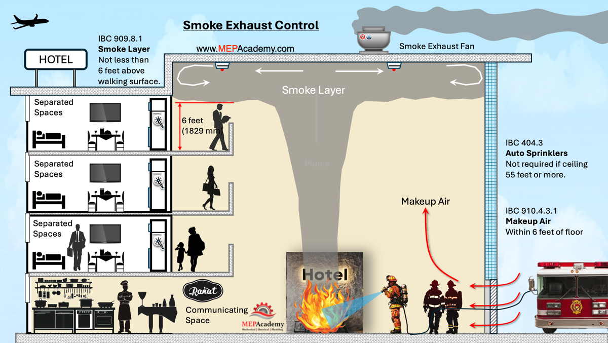 In this article, we break down two essential smoke control strategies designed for large commercial spaces. First, we cover a targeted smoke control method tailored for hotel guestroom floors, keeping hallways and exit routes safe during an emergency. Then, we explore how an atrium smoke control system works to keep open, multi-story spaces clear of smoke by using smoke exhaust fans. These are just a couple of the many approaches used to manage smoke effectively and maintain safe evacuation paths.